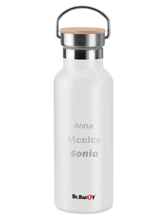 Dr.Bacty Iris 500 ml Thermoflasche - weiß - personalisiert mit Gravur