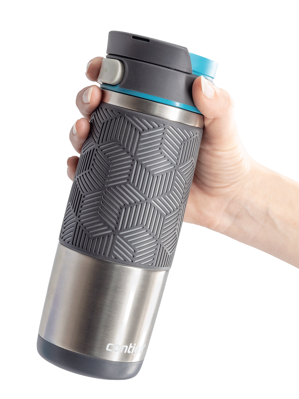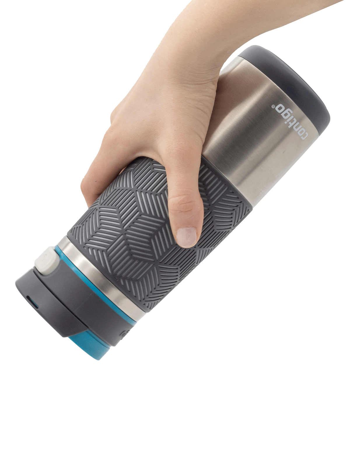 Ein weiches, rutschfestes Band, das mehr als die Hälfte des Körpers bedeckt, sorgt dafür, dass der Contigo Transit Becher in jeder Situation sicher in der Hand bleibt. So rutscht nichts aus der Hand, selbst wenn die Hände nass sind. Eine zusätzliche Anti-Rutsch-Beschichtung auf der Unterseite schützt den Becher vor dem Umkippen und die Oberseite vor der Gefahr von Kratzern.
