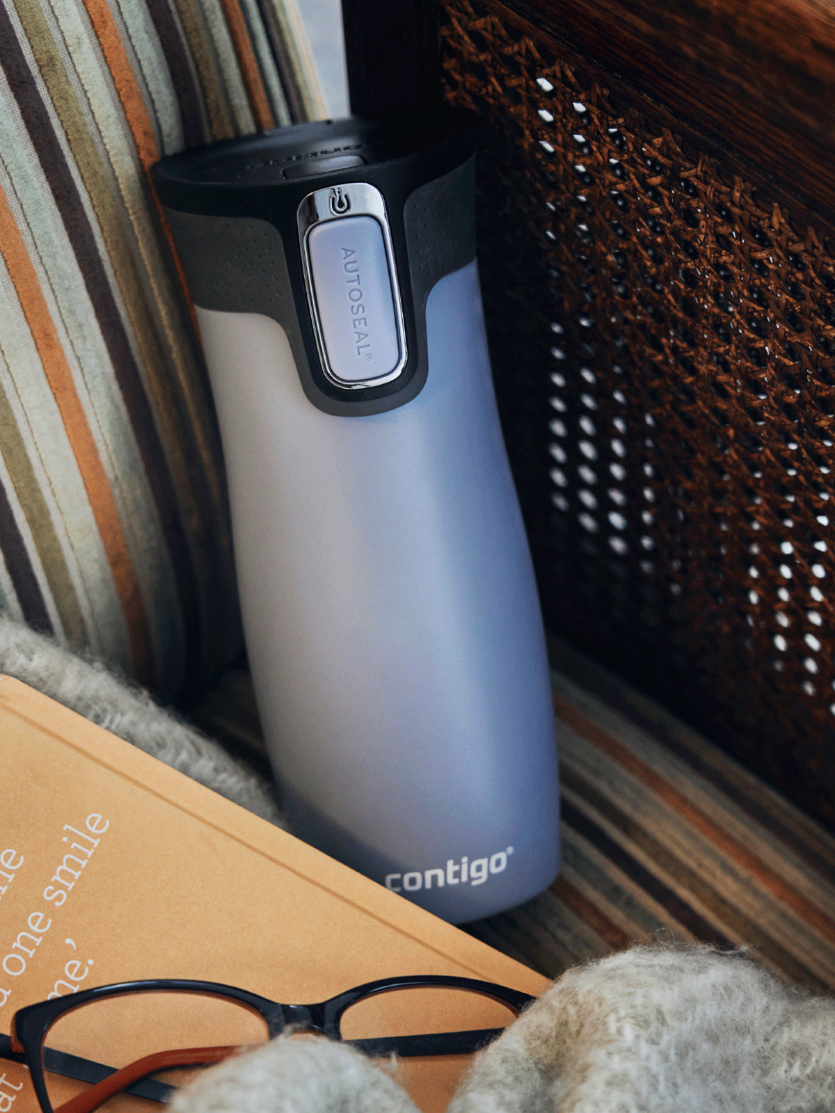 - ✅Becher Contigo West Loop in wunderschöner, mattblauer Farbe.