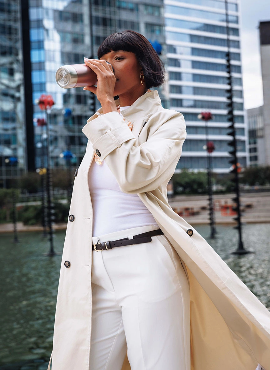 Der Becher wurde so entworfen, dass er in die meisten Getränkehalter passt und hat ein elegantes, stilvolles Design.