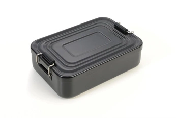 - Firmengadget. Lunchbox mit Clipverschluss, spülmaschinenfest, lebensmittelsicher, alternative Verwendung: als Schlüsseltresor oder Küchenutensilienbehälter, aus Aluminium, schwarz.