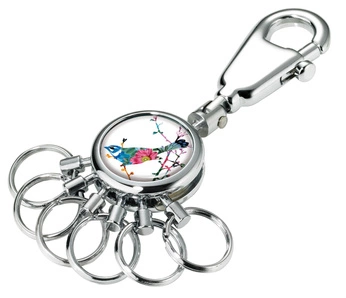 - Toll als Firmengeschenk. Schlüsselanhänger mit Karabinerhaken, Motiv: BIRDIE, 6 austauschbare Ringe, Metall, verchromt, glänzend, mehrfarbig.