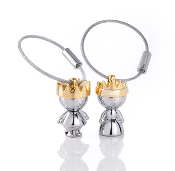 - Toll als Firmengeschenk. Schlüsselanhänger-Set König und Königin, Metallguss, verchromt, glänzend, gold-/silberfarben.