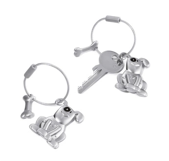 - Firmengadget. Schlüsselanhänger, Hund, Knochen, Metallguss, matt, silberfarben.