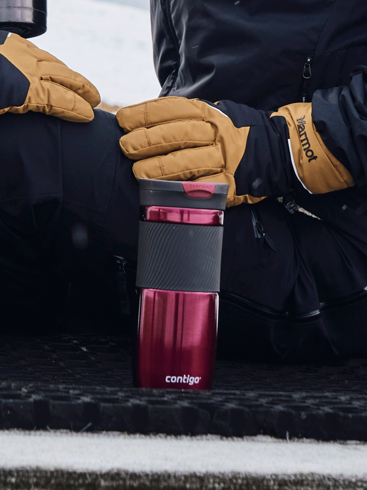 You grab a cup in a hurry. Or you want to get comfortable with your coffee when you have gloves on your hands. In none of these situations thermal mug Contigo Byron will not slip out of your hands. This is because there is a large, non-slip cover on its body, which makes it much easier to hold the cup securely.
