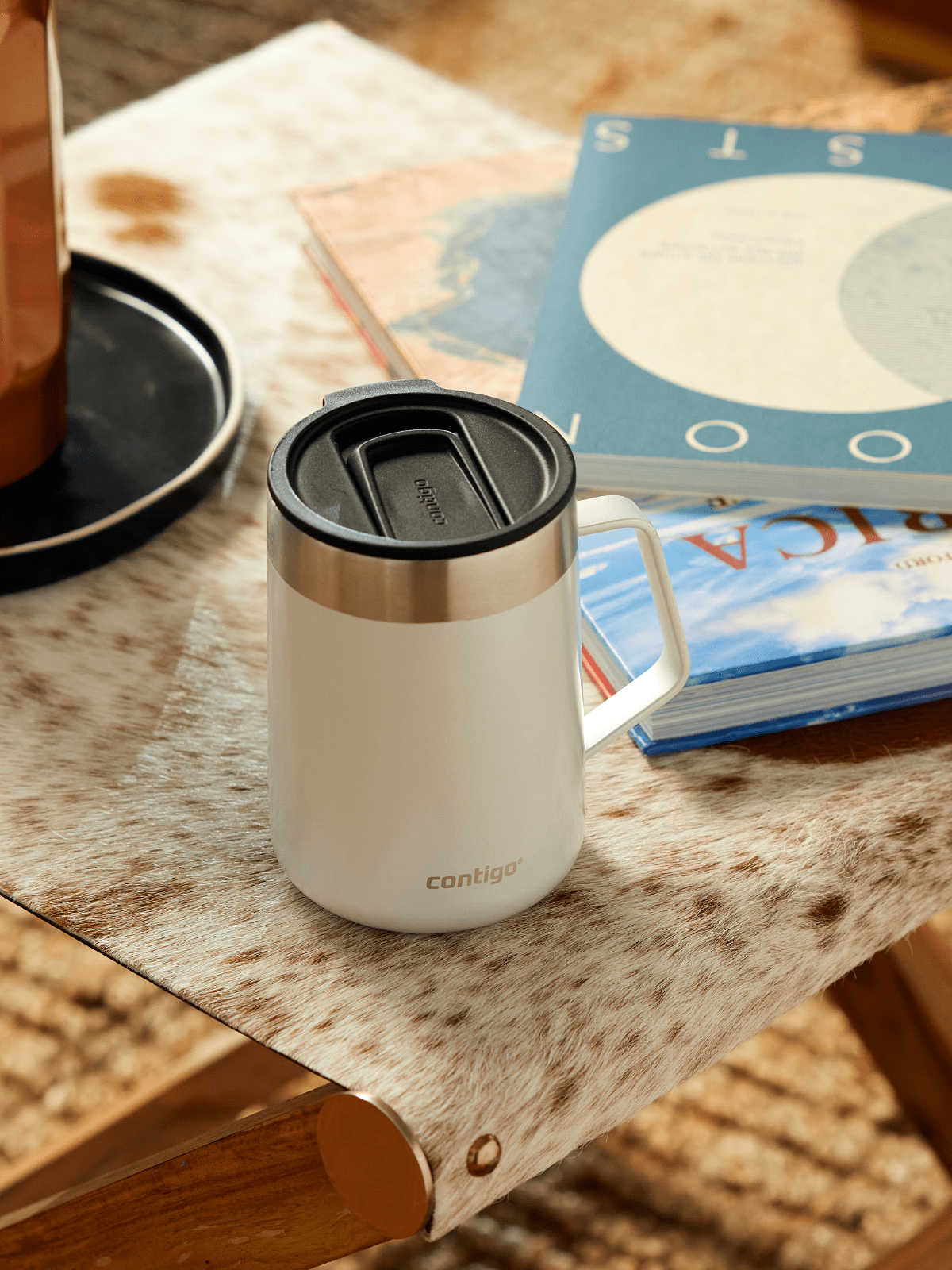Sophisticated design that catches the eye with its unique metallic colours. Phenomenal Thermalock™ vacuum insulation to keep drinks warm for 5 hours and cool for 15 hours. Plus a comfortable handle that makes drinking your favourite coffee or tea even more enjoyable. These are just the beginning of the advantages of the Contigo Streeterville thermal mug with ear. What else makes the Contigo novelty worth buying?