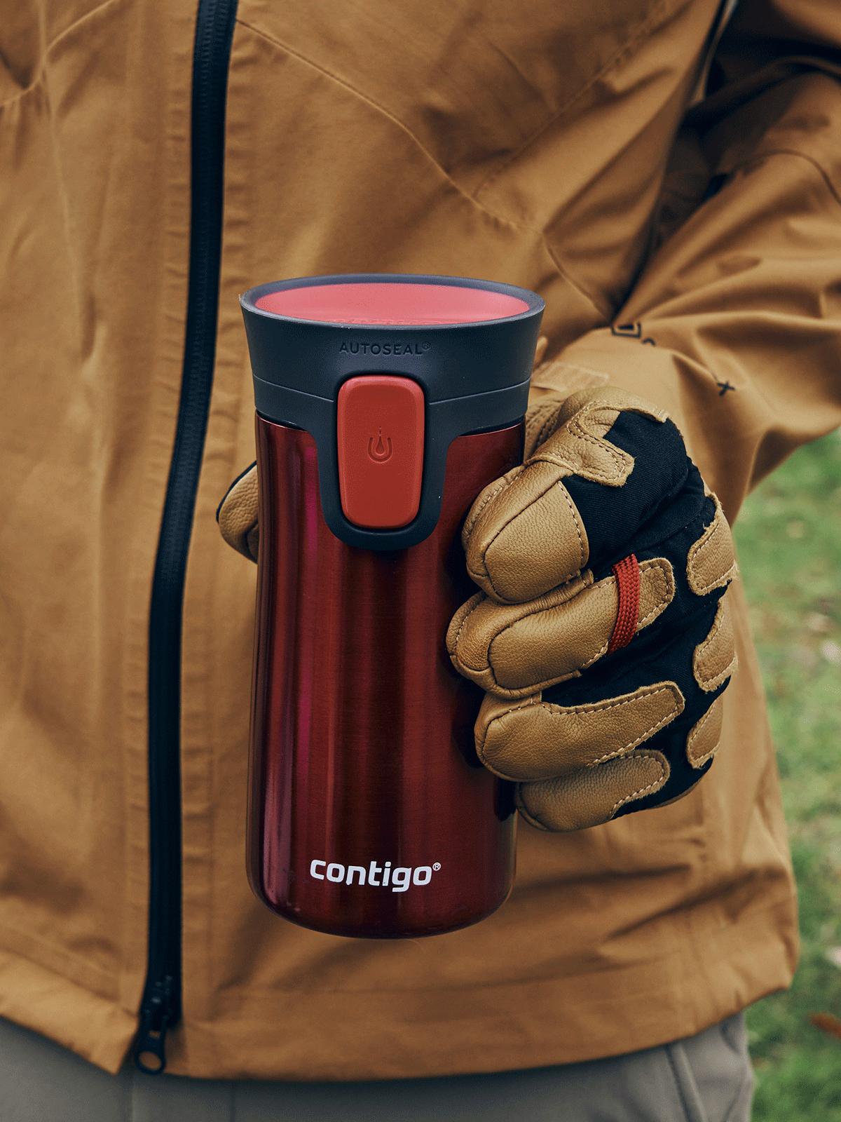 Contigo Pinnacle thermal coffee mugs have two steel walls with ThermaLock vacuum insulation between them. Combined with a 100% leak-proof cap, this means that we can enjoy a hot drink for 3 hours, while cool water or juice for up to 10 hours.