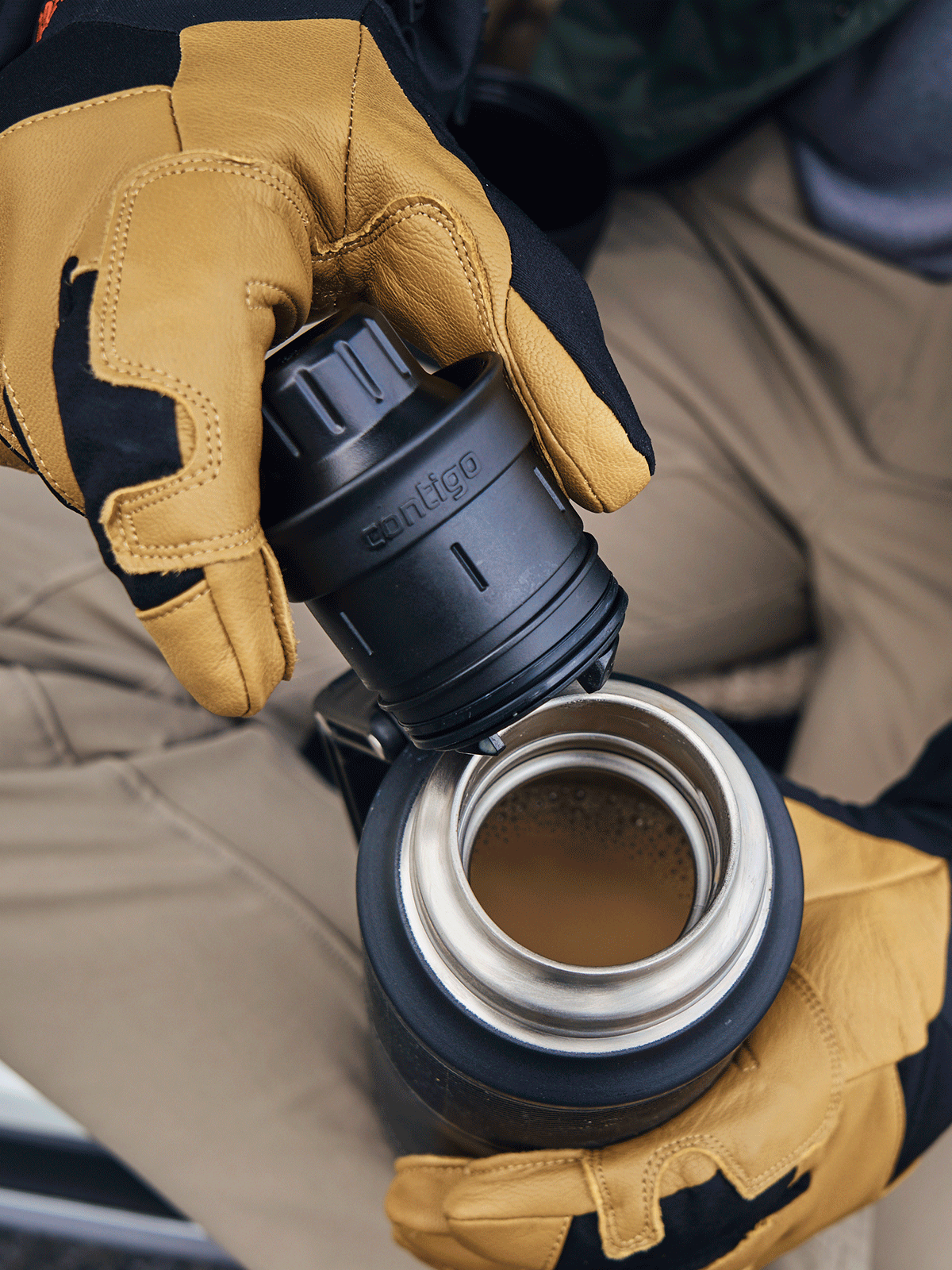 Want to take a lot of hot coffee with you? The 740 ml thermos from Contigo makes it possible. You can pour up to three glasses of your favourite hot or cold beverage into it. You can enjoy them alone or share them with your tour companions.