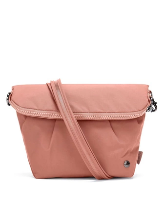Folding women's anti-theft handbag Pacsafe Citysafe CX - pink, made of econyl