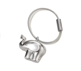 - Great for a corporate gift. Keychain, small elephant, metal casting, matte finish, silver color.