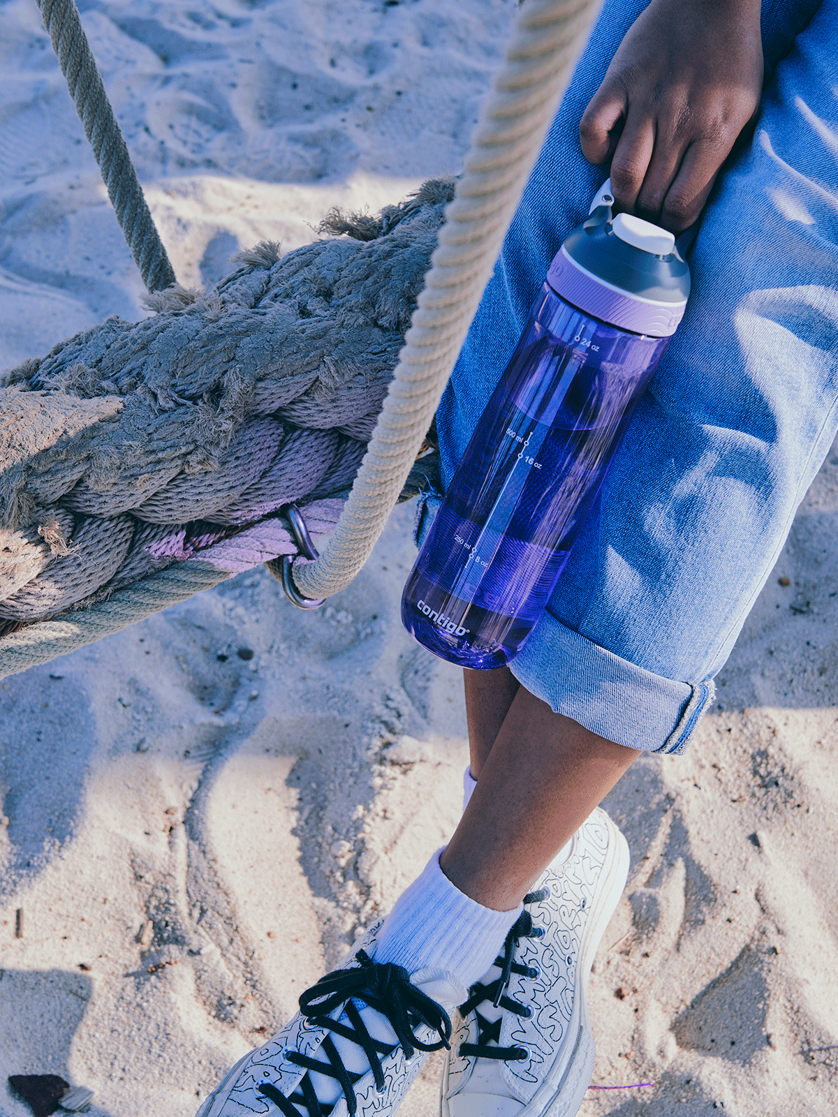 Aby otworzyć ustnik, wystarczy zwolnić blokadę i nacisnąć przycisk. Zamknięcie ustnika jest równie proste - musisz tylko upuścić klapkę, po czym zablokować ją przed przypadkowym otwarciem za pomocą przesuwanego elementu. Wszystkie te czynności możesz wykonać jedną ręką nawet wtedy, gdy jedziesz autem, biegniesz czy jedziesz na rowerze. Dzięki temu butelka Contigo Cortland nadaje się zarówno do wygodnego uprawiania sportu, jak i do korzystania w każdej podróży.