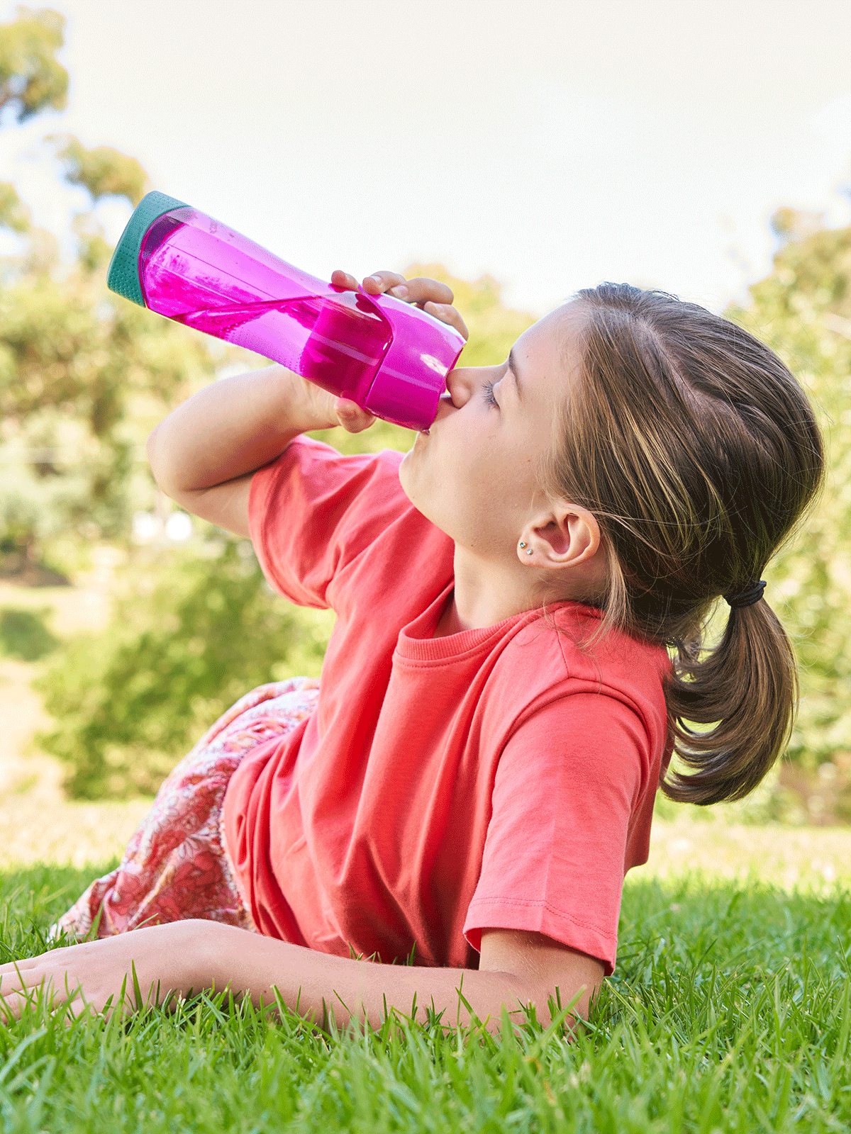 By napić się płynu, naciśnij przycisk Autoseal umieszczony na nakrętce i przechyl korpus. By zamknąć ustnik - puść przycisk. Na nakrętce znajduje się dodatkowa blokada uniemożliwiająca przypadkowe naciśnięcie przycisku