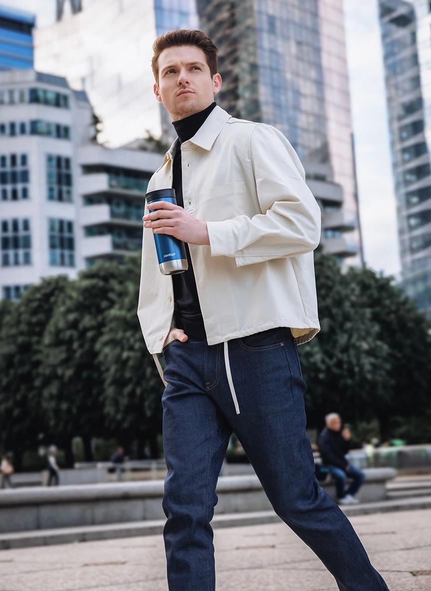Kubek podróżny Contigo Huron 2.0 SNAPSEAL™ został zaprojektowany z myślą o łatwym piciu jedną ręką. Wystarczy nacisnąć górną część, aby się napić (nie ma żadnych części do odkręcania lub zdejmowania), a następnie zamknąć ją, po wypiciu, aby uszczelnić pokrywkę.