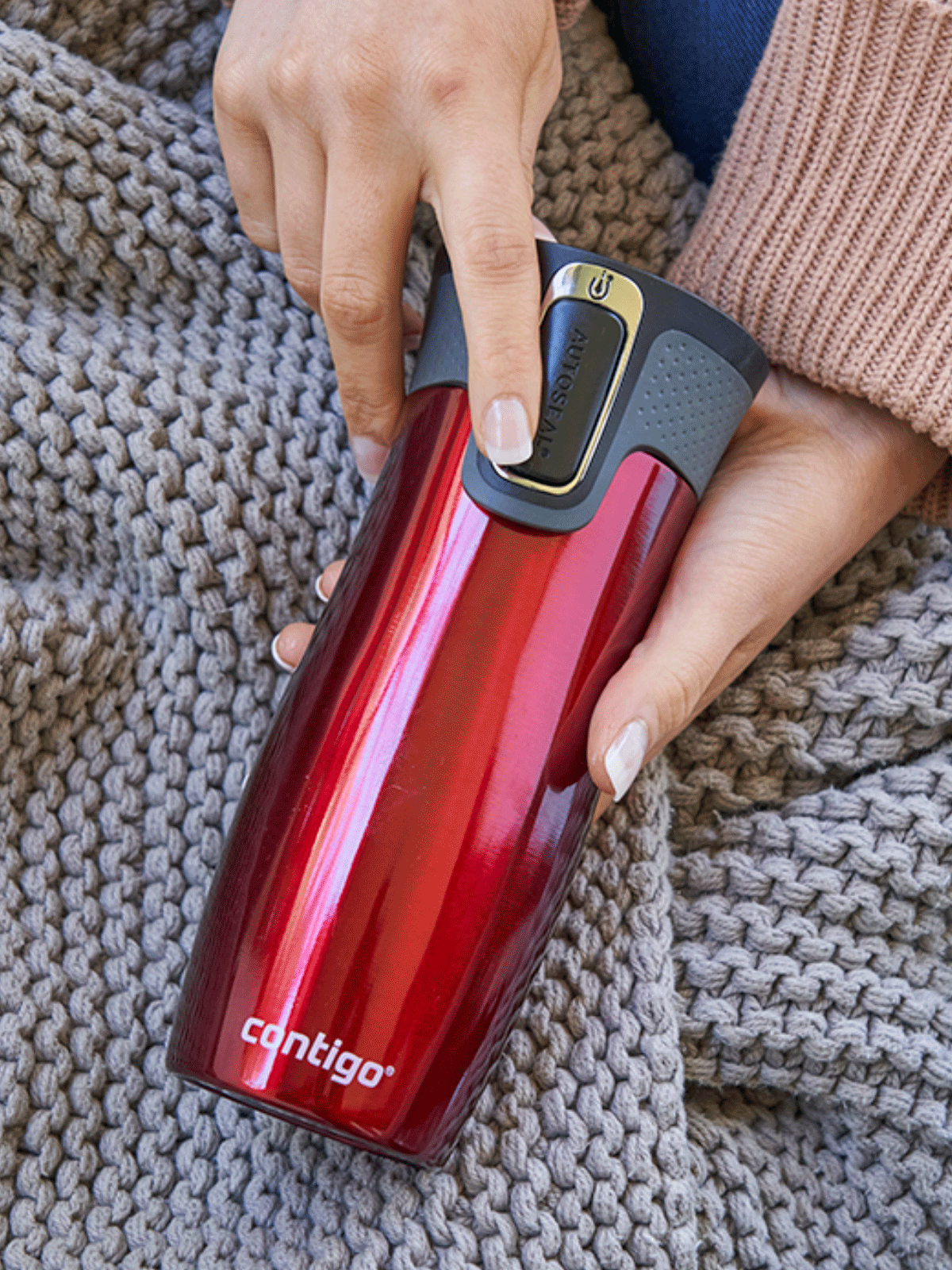 Obsługujesz go jedną ręką. Naciskasz - pijesz. Puszczasz - zamykasz. Dzięki technologii AUTOSEAL kubek jest w 100% szczelny. Dodatkowo nowa nakrętka została wyposażona w blokadę uniemożliwiającą przypadkowe naciśnięcie kiedy kubek trzymasz w torbie.
