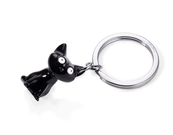 - Gadżet firmowy. Brelok do kluczy, kot, odlew metalowy, emalia, chromowany, błyszczący, czarny