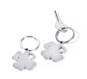 - Gadżet firmowy. Brelok do kluczy, czterolistna koniczyna, wykonany z SWAROVSKI® ELEMENTS, odlew metalowy, chromowany, błyszczący, kolor srebrny