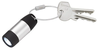 - Świetny na prezent firmowy. Latarka i brelok do kluczy, białe światło, ładowanie przez USB, dzięki temu przyjazna dla środowiska, metal, tworzywo sztuczne, kolor czarny/srebrny