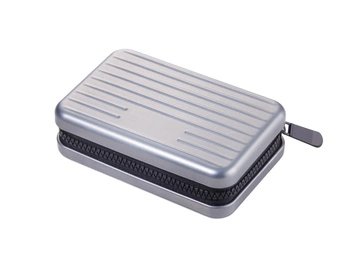 Tylko 70 x 105 x 30 mm wielkości, ale w pełni rozwinięty projekt. Posiada cechy, których nie oferuje prawie żadne duże etui typu hard-shell: dziewięć przegródek z miejscem na 20 kart, drobne lub paragony, zabezpieczenie przed odczytem chipów RFID oraz zamek błyskawiczny na całej długości. Wykonane z aluminium i poliestru w kolorze czarnym matowym, niebieskim i czerwonym oraz tytanowym.