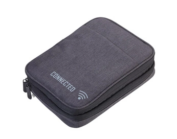 - Ciekawy prezent dla klienta. Organizer na kable z 2 przegrodami na suwak, 2 przegrodami wewnętrznymi z kieszeniami z siatki i elastycznymi pętlami na akcesoria (Every Day Carry), pętlą na długopis, 1 przegrodą zewnętrzną, paskiem do mocowania na wózku, po